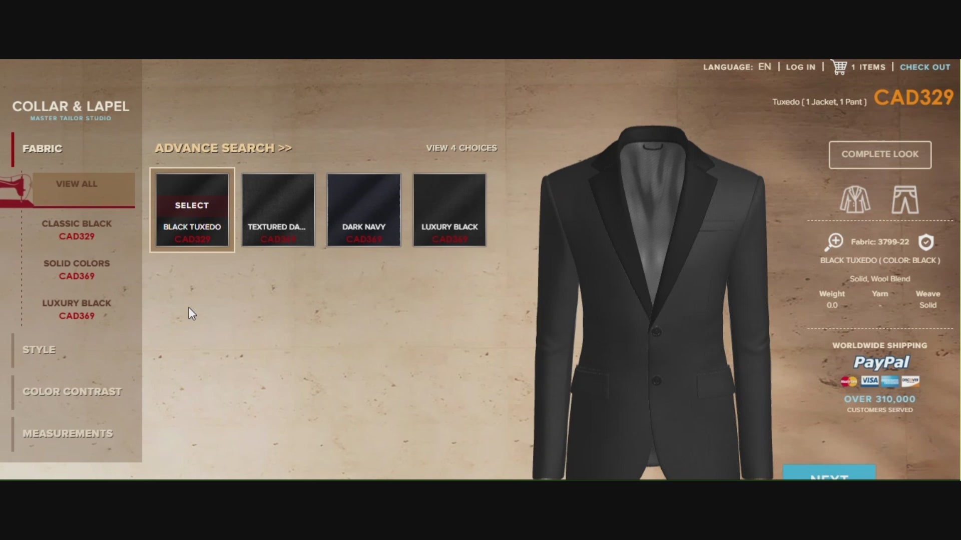 Select your preferred choice of lapels, buttons, collars and more, with our 3D model.